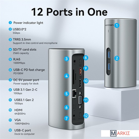 Markit » USB-хабы и док-станции » Док-станция Vention TPJH0-EU