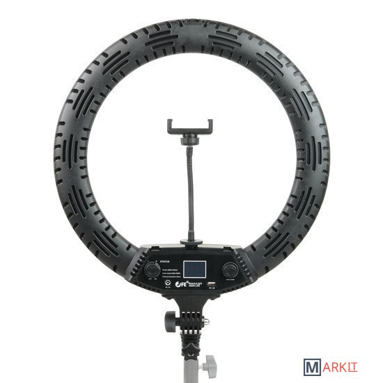 Falcon Eyes BeautyLight 450R LED – компактный биколорный кольцевой осветитель Ø45 см, на световой панели которого расположено 416 светодиодов «теплого» и «холодного» света, с плавно регулируемой цветовой температурой и мощностью светового потока от 10 до 100% (65 Вт).В осветительном приборе предусмотрены 5 динамических световых спецэффектов, которые разнообразят видеоряд и сделают съемку креативнее.Держатель смартфона, пульт дистанционного управления и сумка для переноски осветителя входят в комплект.Кольцевые осветители серии BeautyLight используются в качестве источника постоянного света различных сферах фото- и видеопроизводства.Такие осветители пользуются большой популярностью у блогеров, косметологов, визажистов, фотографов и видеографов, в задачи которых входит съемка людей крупным планом. Кроме того устройства часто задействованы в предметной съемке, записи мастер-классов, обзоров и многого другого.Мягкое бестеневое освещение выравнивает тон лица, сглаживает неровности и представляет объект съемки наилучшим образом. Кольцевая форма создает интересные блики в глазах или на блестящих поверхностях.