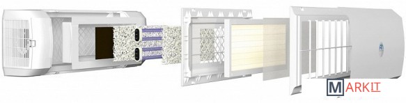 Производительность: 100 м3/часКласс очистки: Н11Уровень шума: 42 dB(A)Номинальная потребляемая мощность, ВА 52Эффективность обеззараживания по S.aureus (золотистому стафилококку) Не менее 99,9 %Очистка воздуха от основных вредных веществ (формальдегиду, двуокиси азота, озону) при концентрациях до 5 ПДКсс по ГН 2.1.6.1338-03 До уровня ПДКссНапряжение питающей сети, В 220+10%Частота тока питающей сети, Гц 50Диапазон излучения УФ, нм 385Воздушный фильтр, класс очистки Н11Количество вентиляторов, шт 1Светодиодный УФ модуль LED – UVXC 6, шт. 1Количество УФ светодиодов в модуле, шт. 18Носитель катализатора фотоокисления стабильное полиэфирное нетканое волокноУровень шума, dB(A) 42Габаритные размеры, (ДхШхВ),мм 760х265х170Масса, кг 4,7Режим работы Не менее 8 часов, рекомендуется непрерывный режим