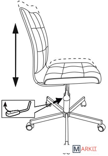 Колеса оснащены тормозом безопасности, реагирующим на изменение давления: стул не откатывается, когда вы садитесь или встаете.