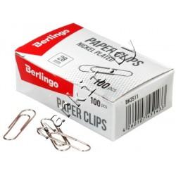 Скрепки Berlingo, 28 мм, 100 шт., округлые, никелированные Код: 33121