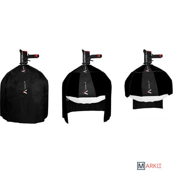 Новая модель софтбокса от Aputure имеет уникальную конструкцию. В сложенном состоянии она имеет форму конуса, но за одно движение может принять рабочую сферическую. Благодаря этому насадка проста в транспортировке и хранении, но её можно быстро подготовить к работе. Достаточно лишь прижать конус к полу и "зарядить" кольцо адаптера внутрь, а после всего лишь скрепить концы ткани. Модель имеет крепление Bowens и подойдёт к любому соответствующему осветителю.В комплекте с насадкой вы найдете специальную юбку, при помощи которых вы сможете регулировать световой поток. Четыре сегмента можно отдельно друг от друга поднимать и опускать, меняя форму света. С внутренней стороны предусмотрена отражающая поверхность, что позволяет сконцентрировать луч там, где это необходимо.В комплекте с насадкой вы найдете специальную юбку, при помощи которых вы сможете регулировать световой поток. Четыре сегмента можно отдельно друг от друга поднимать и опускать, меняя форму света. С внутренней стороны предусмотрена отражающая поверхность, что позволяет сконцентрировать луч там, где это необходимо.