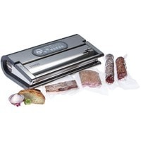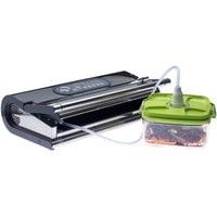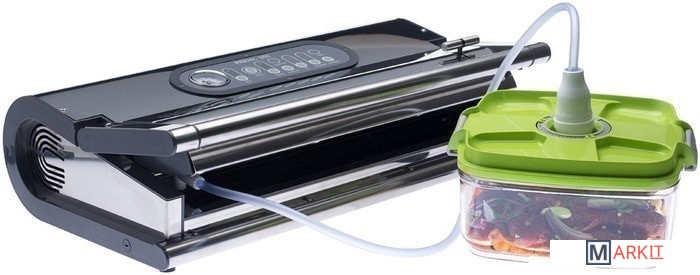 Давление: -900 мбар.Программа маринования в контейнере (18 мин).Встроенный манометр.Комплектация:• 1 рулон – 280 мм X 3000 мм• 1 рулон – 350 мм X 3000 мм• 5 пакетов – 200 мм X 280 мм• 5 пакетов – 120 мм X 550 мм• 5 двухсторонних клеящих лент Status Stiki• 1 переходник для контейнеров• 1 резак для пленки• 1 руководство по эксплуатации